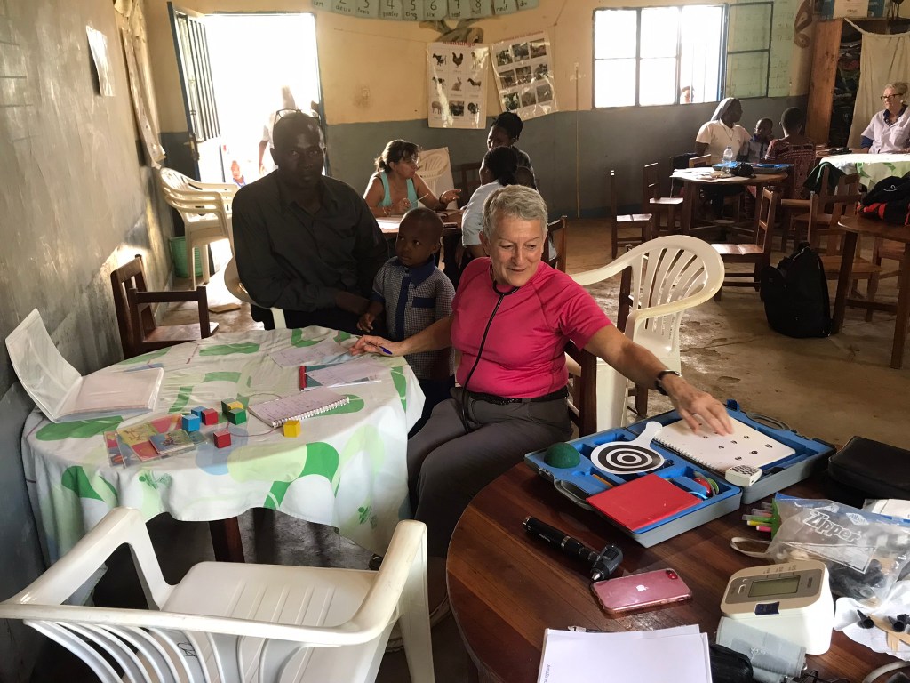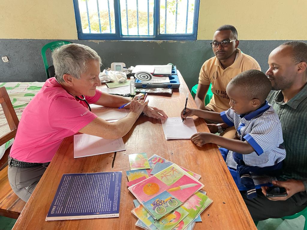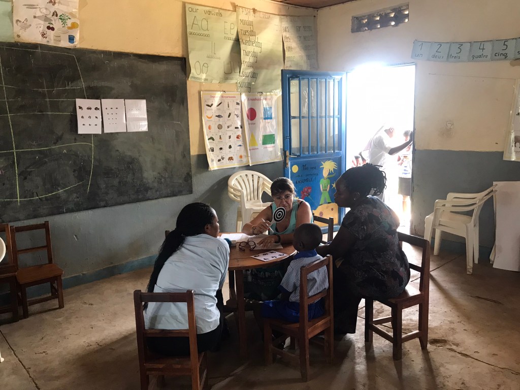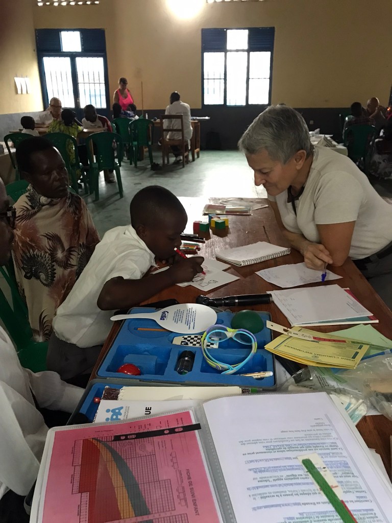 – de dépistage de problèmes potentiels de santé, notamment déficits visuels, auditifs, nutritifs…… lors de consultations de nombreux enfants accompagnés de leurs parents.