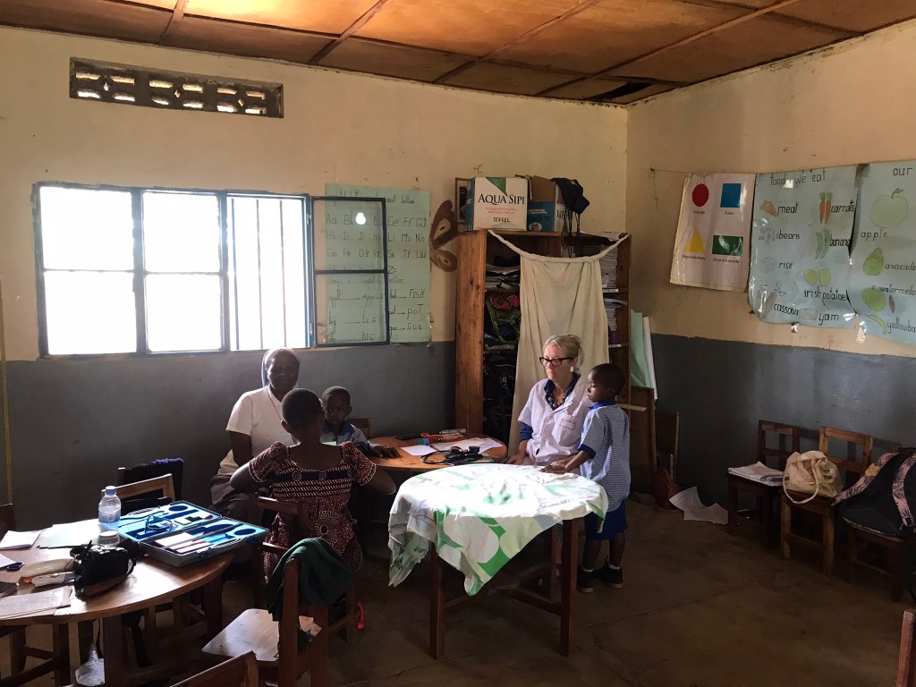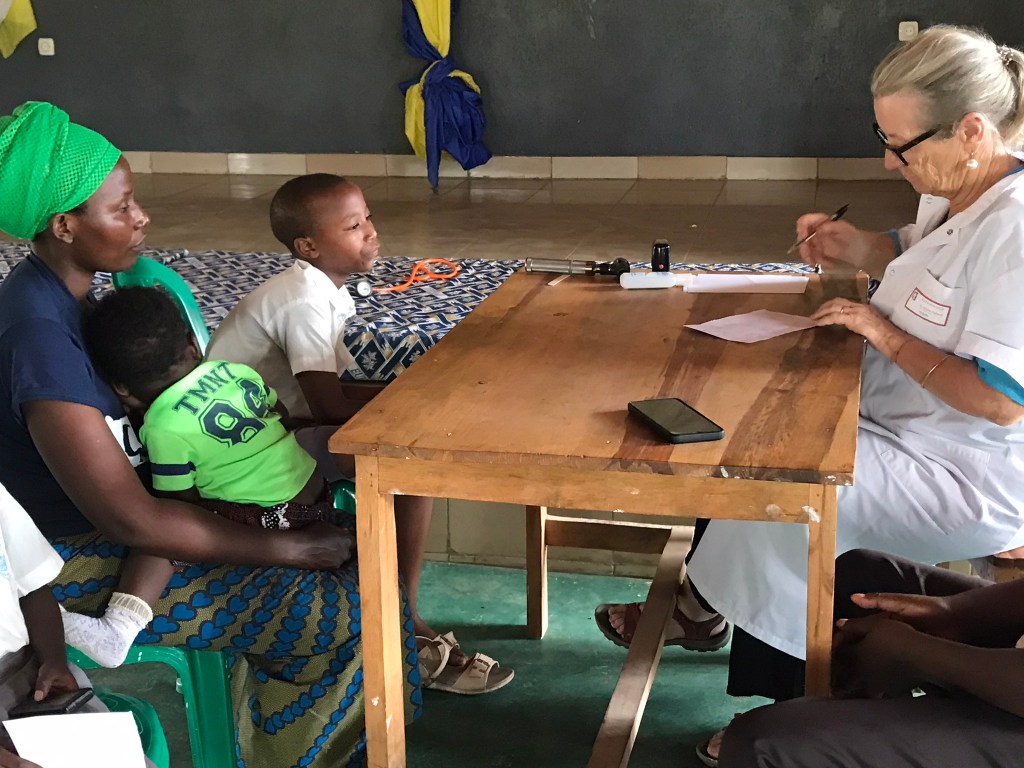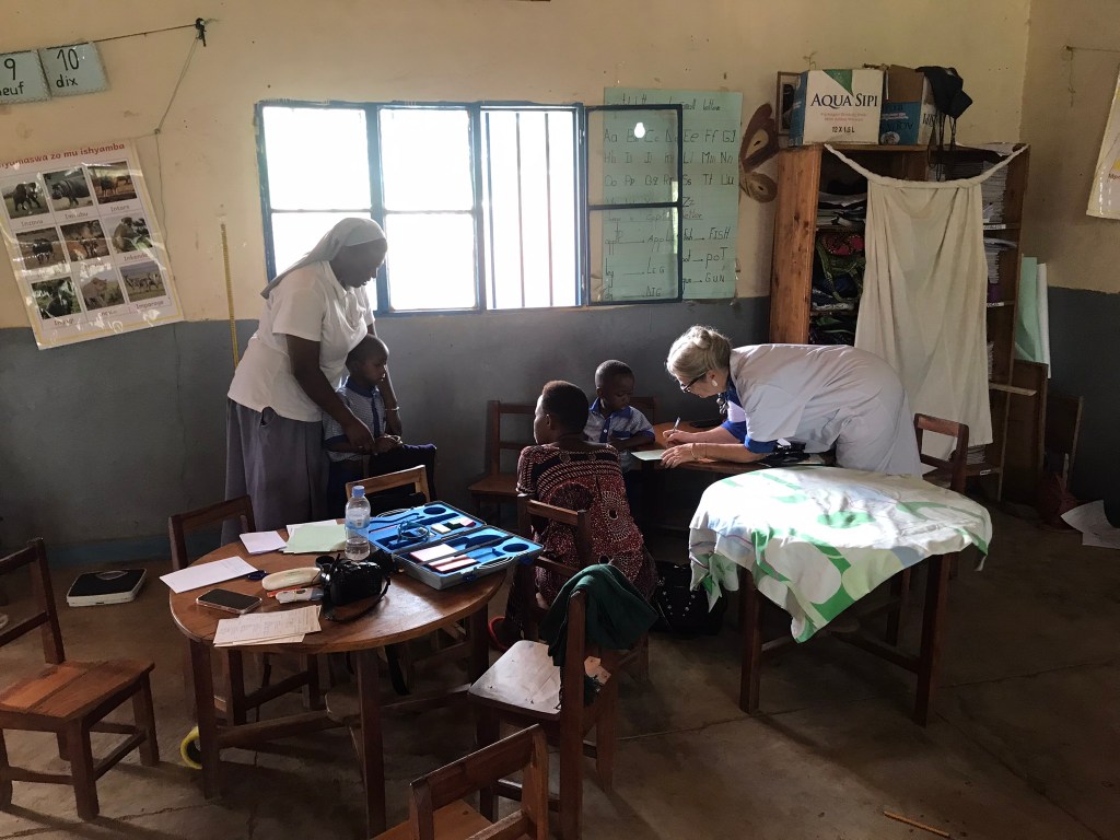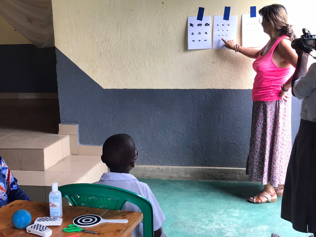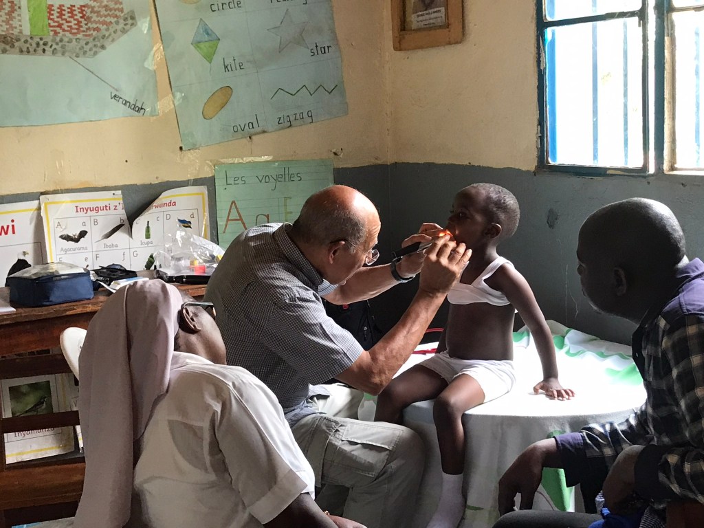 – de dépistage de problèmes potentiels de santé, notamment déficits visuels, auditifs, nutritifs…… lors de consultations de nombreux enfants accompagnés de leurs parents.