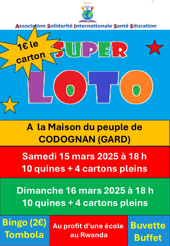 Les 2 lotos, bingo, tombola, buvette et buffet ont permis de collecter plus de 5500 euros au profit du projet de l’école secondaire de Rukomo au Rwanda.