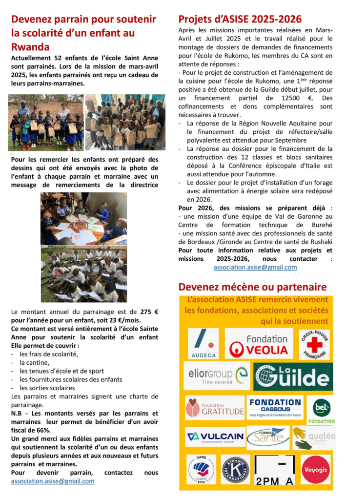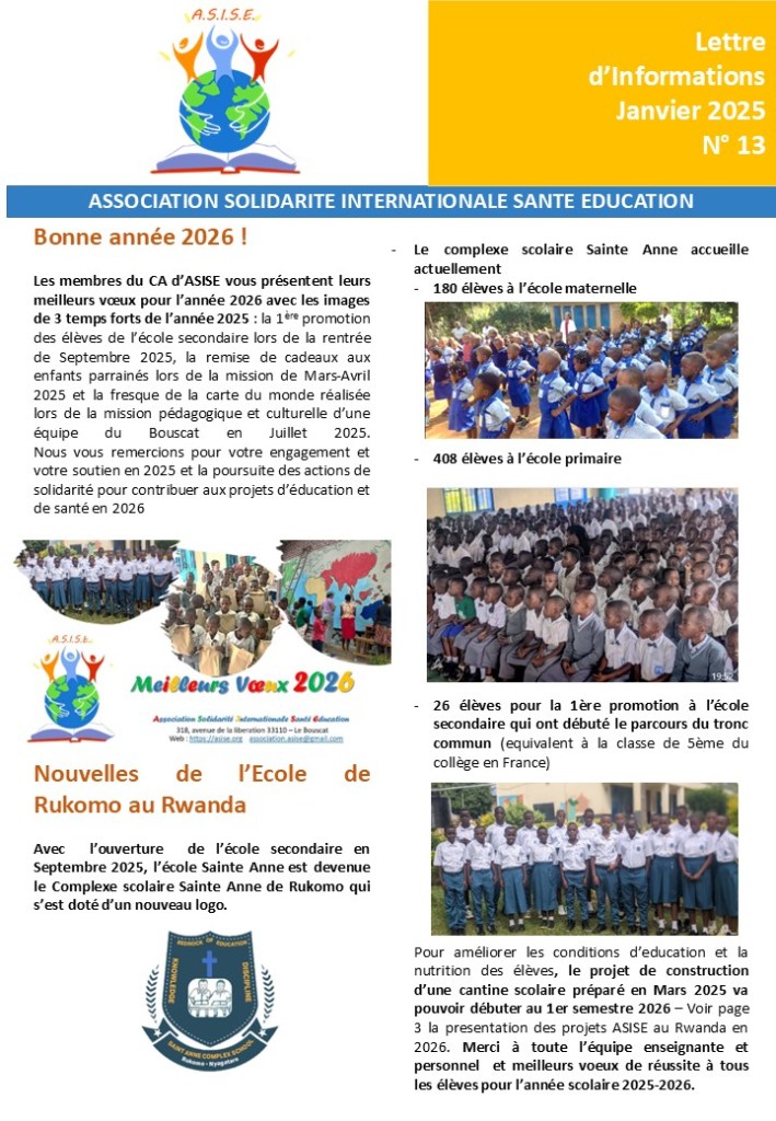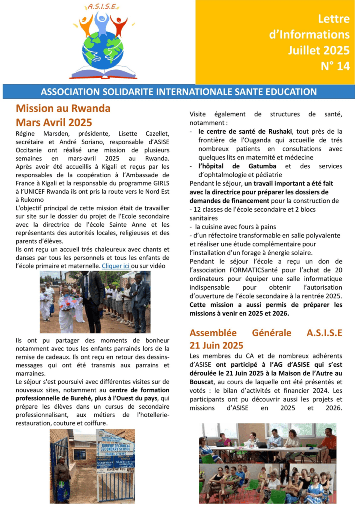 L’association Solidarité Internationale Santé Education, vous propose sa lettre d’informations semestrielle
